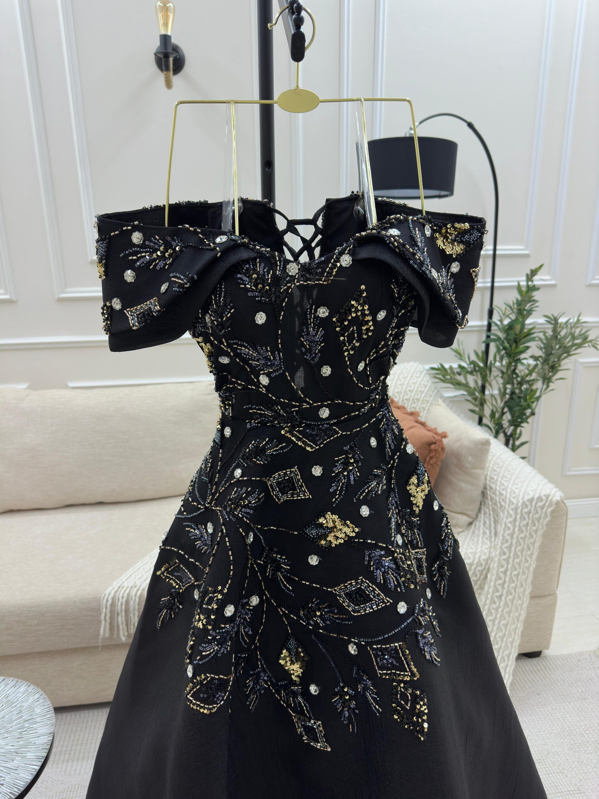 فستان اسود كلفة شك يدوي