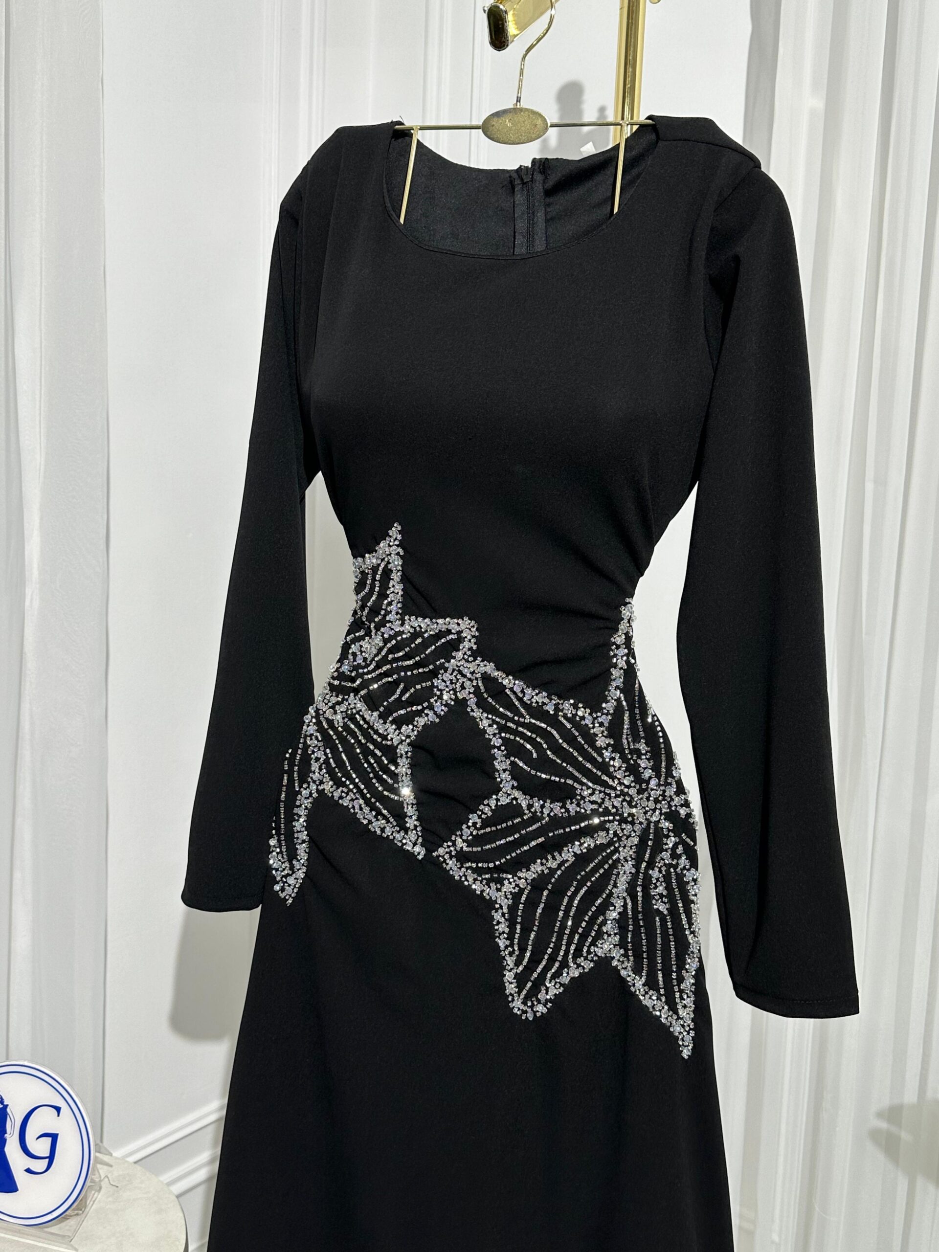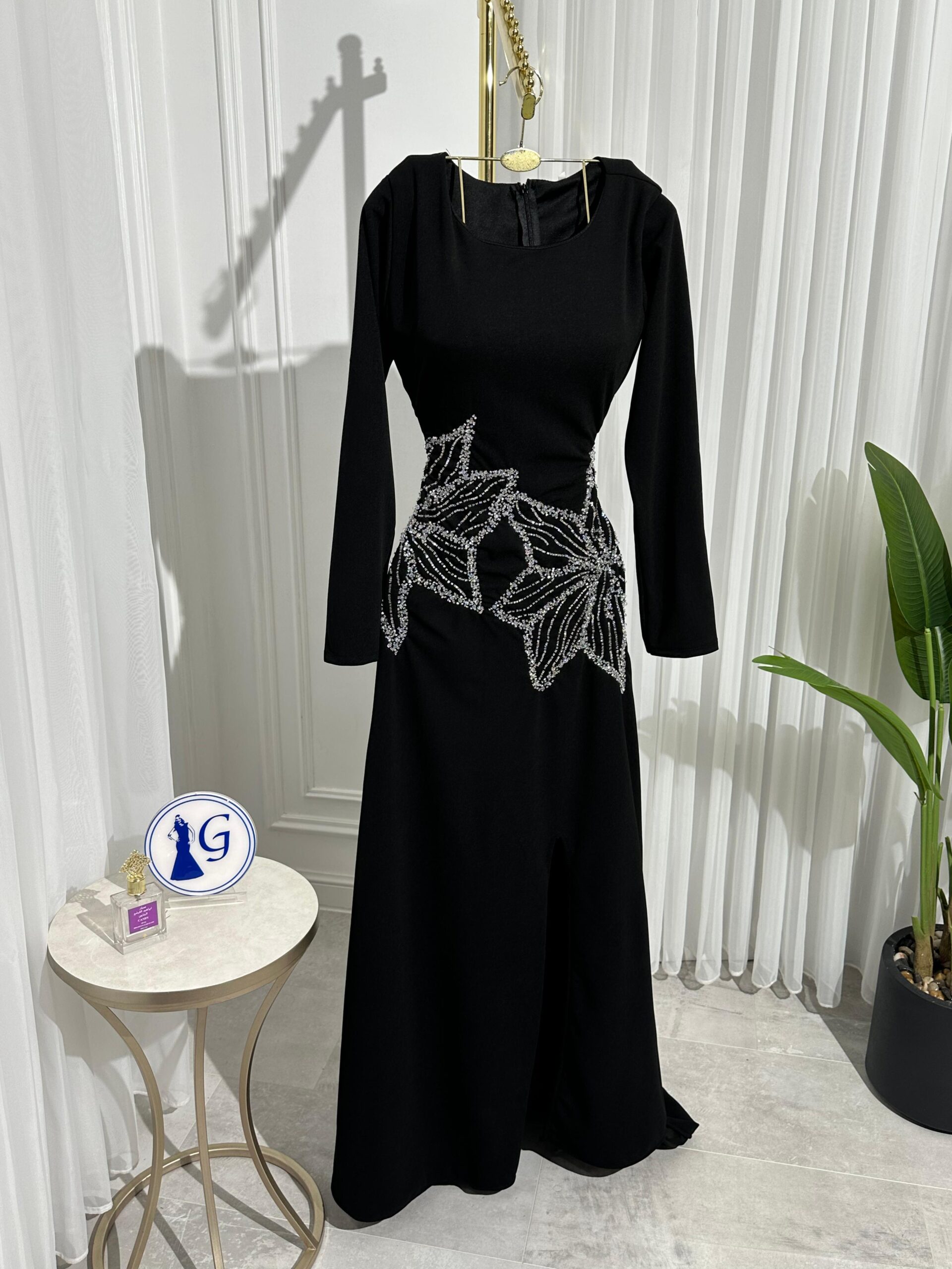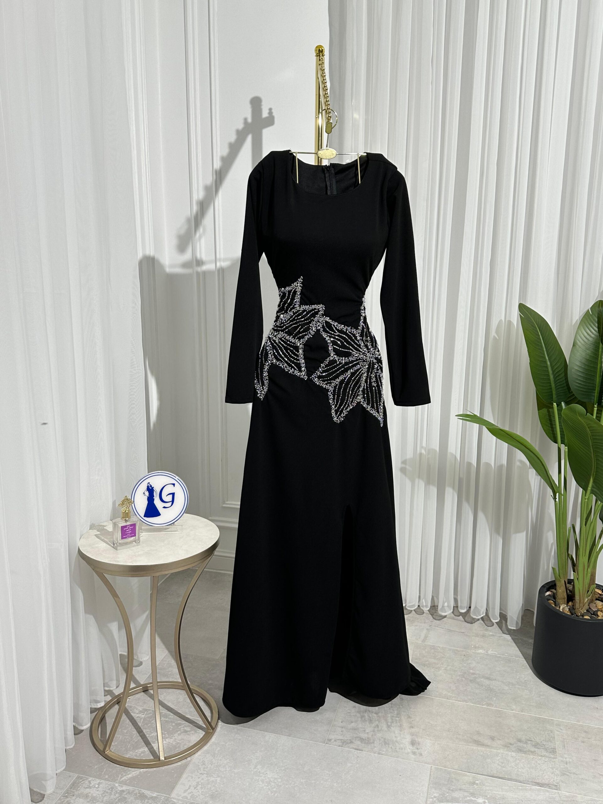 أجمل فساتين سهرة الخامه. كريب استرتش + شك يدوي علا نفس القماش