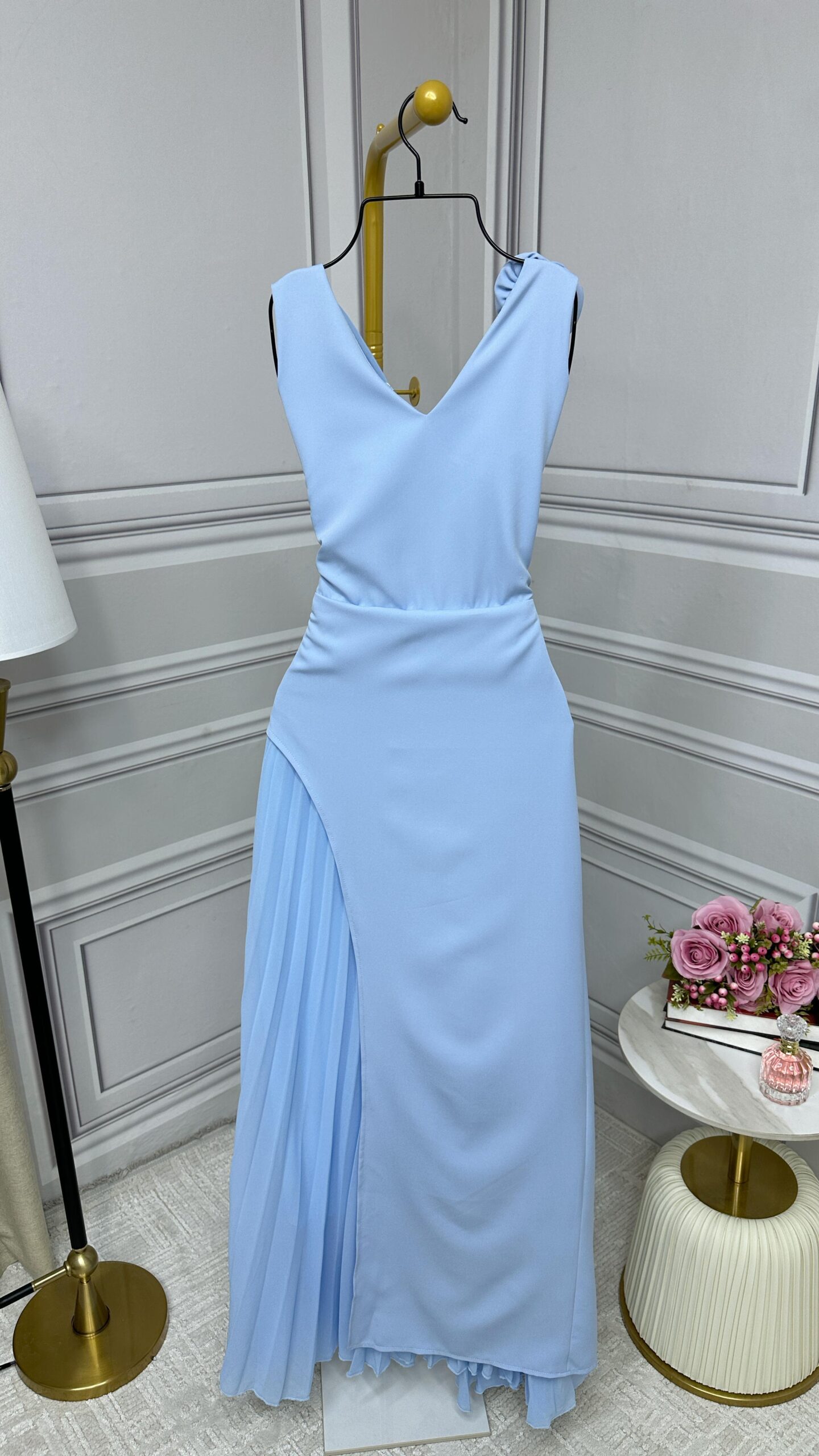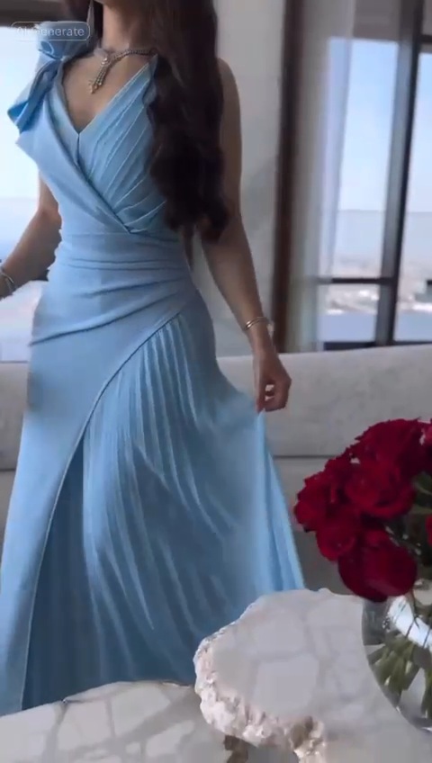 أجمل فستان سهرة لون سماوي