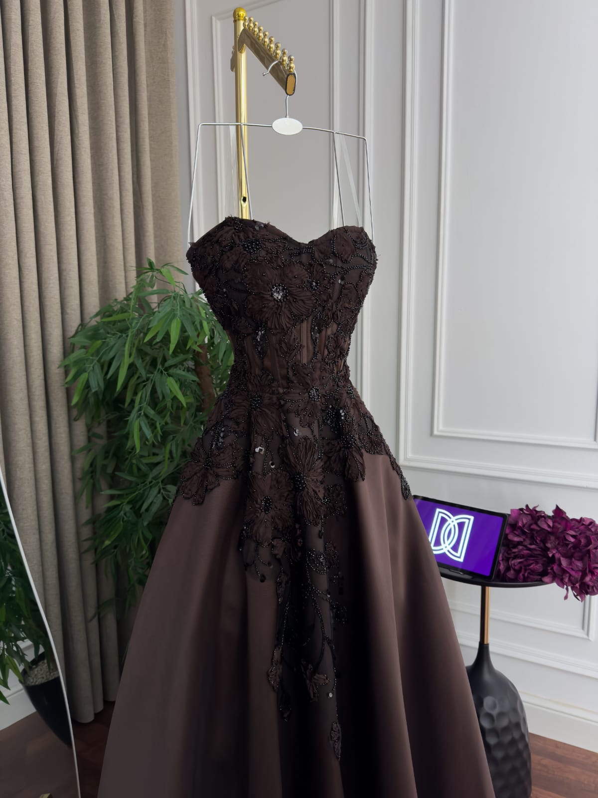فستان سهره الصدر كلفه تطريز ميكادو كلوش دبل