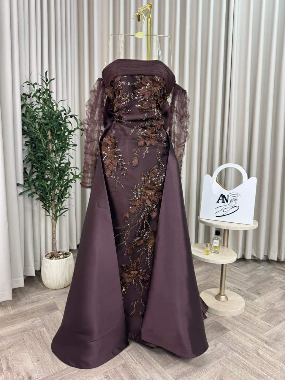 فساتين سهرة طويلة, فساتين سهرة فخمة, فستان لون بنى