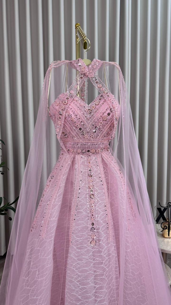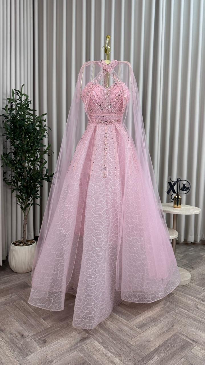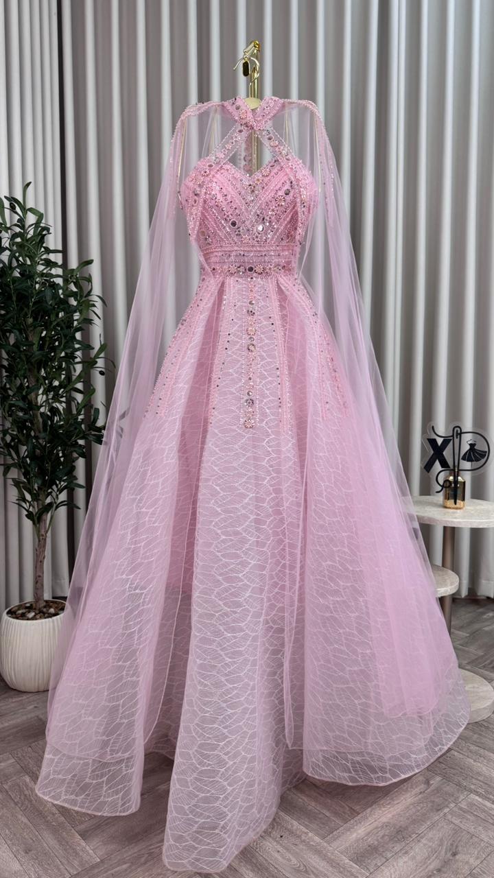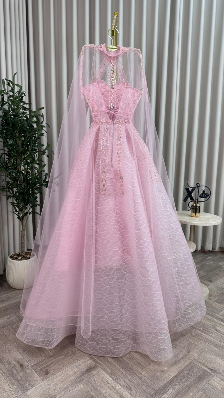 فساتين سهرة فخمة, فستان لون وردى