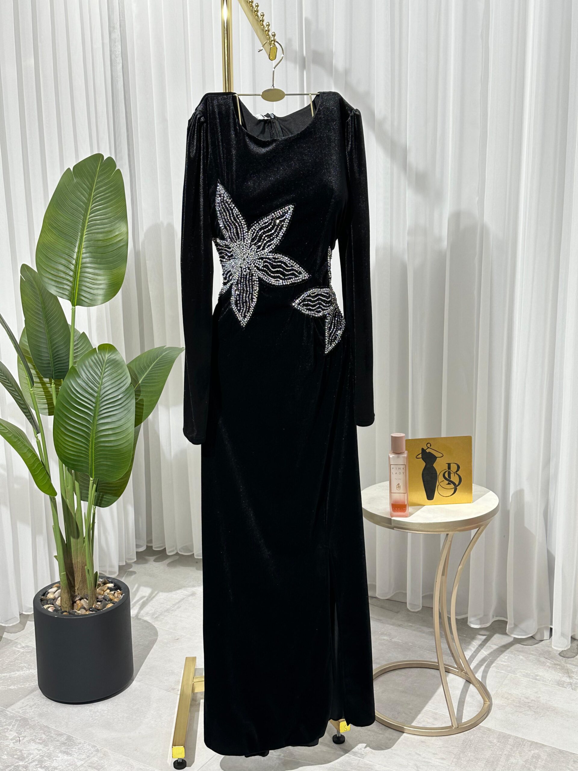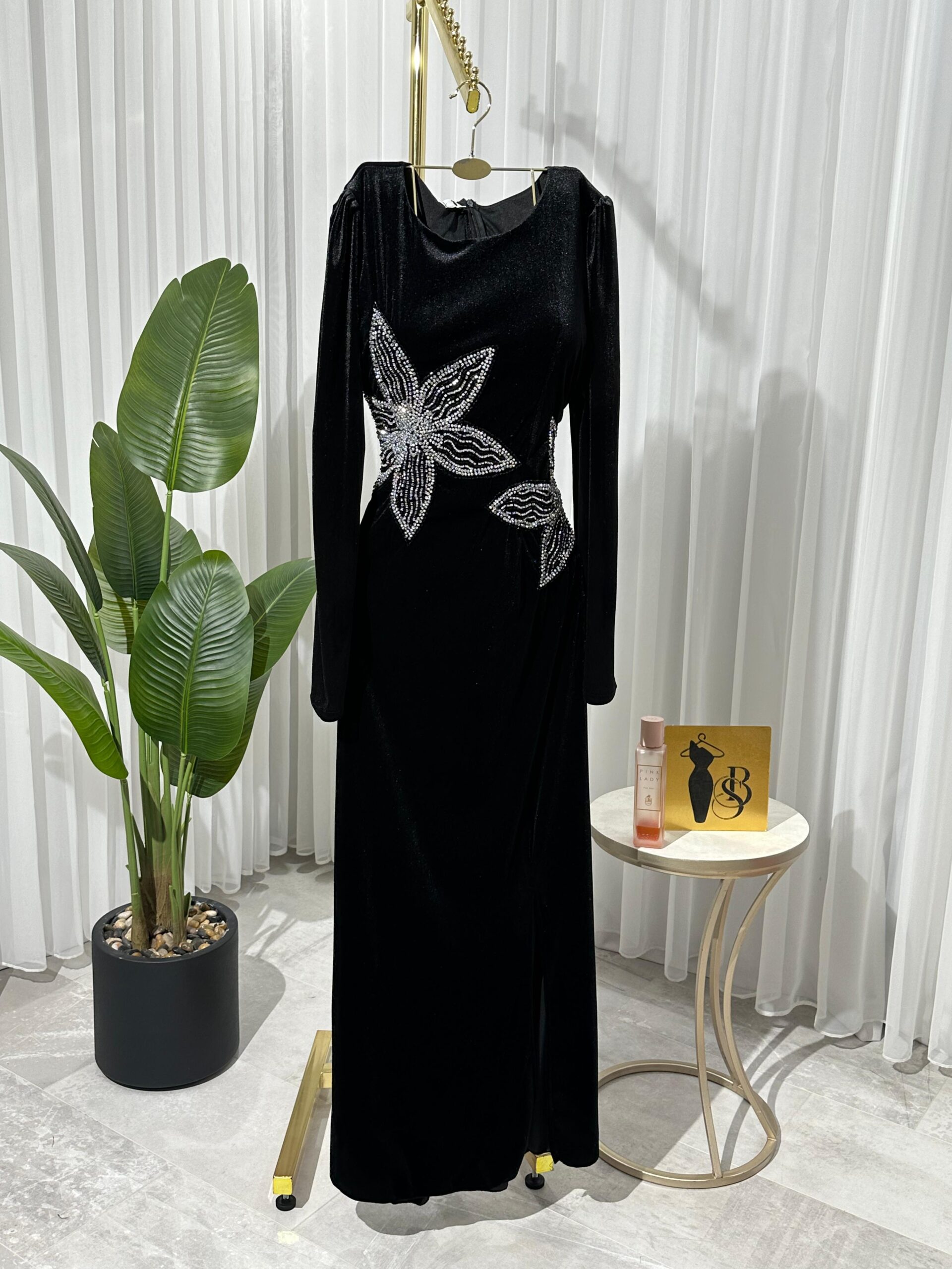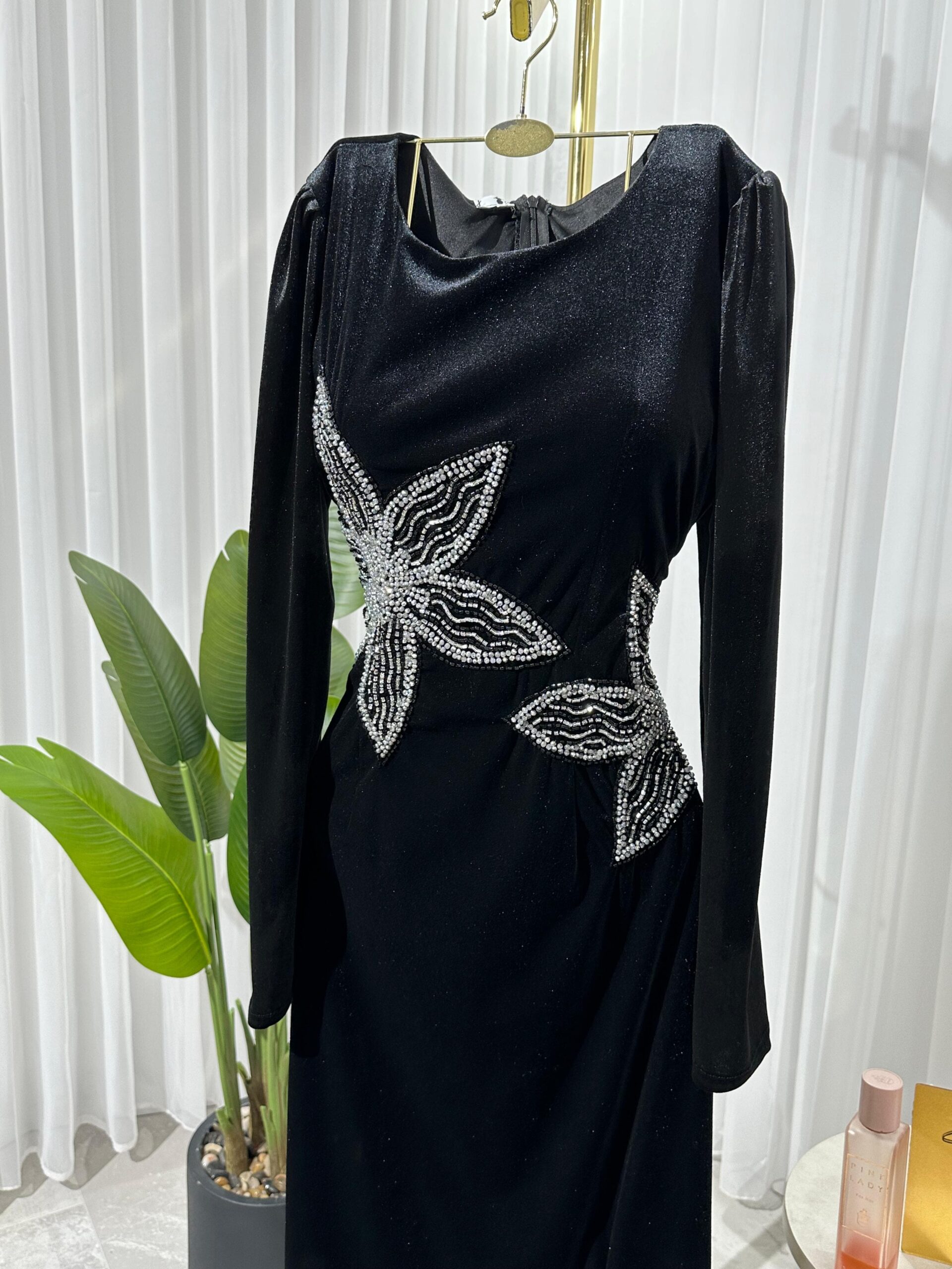 فستان سهرة مخمل قطيفه اسود