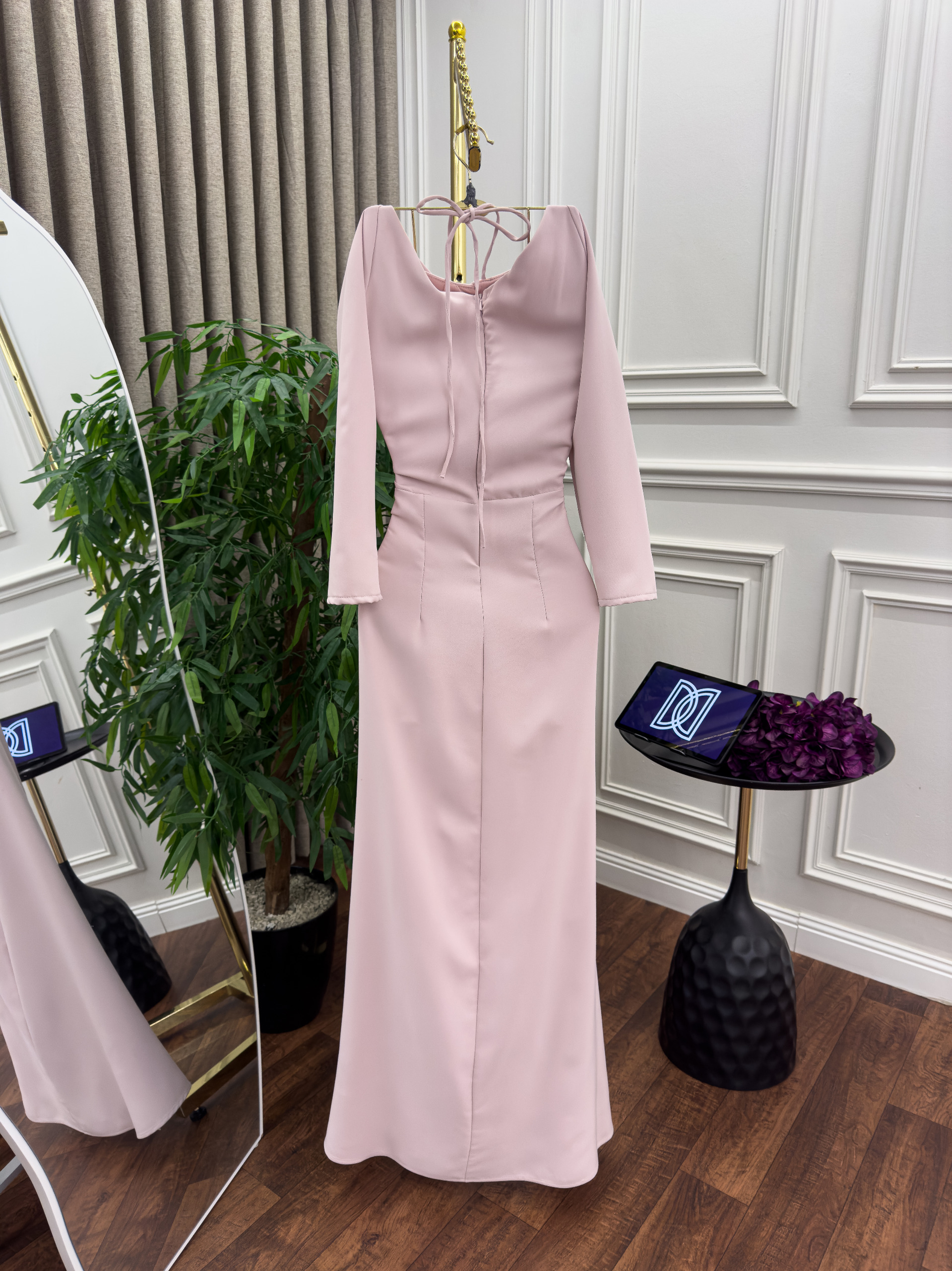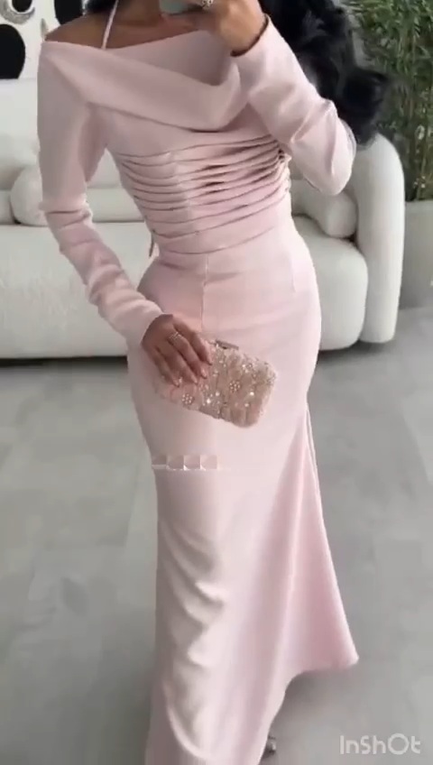 فستان سهرة ب كم طويل فخم وانيق