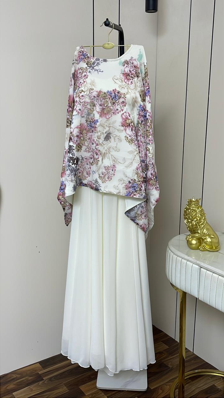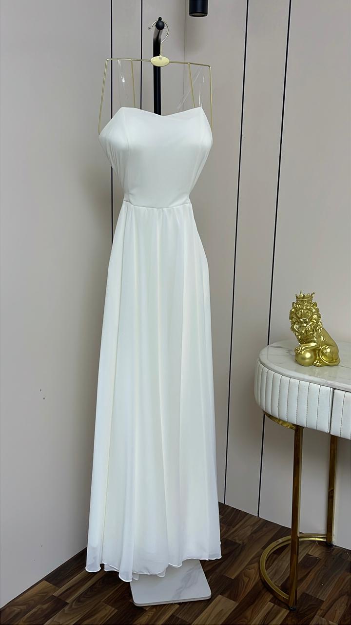 فستان سهرة لون ابيض مشجر