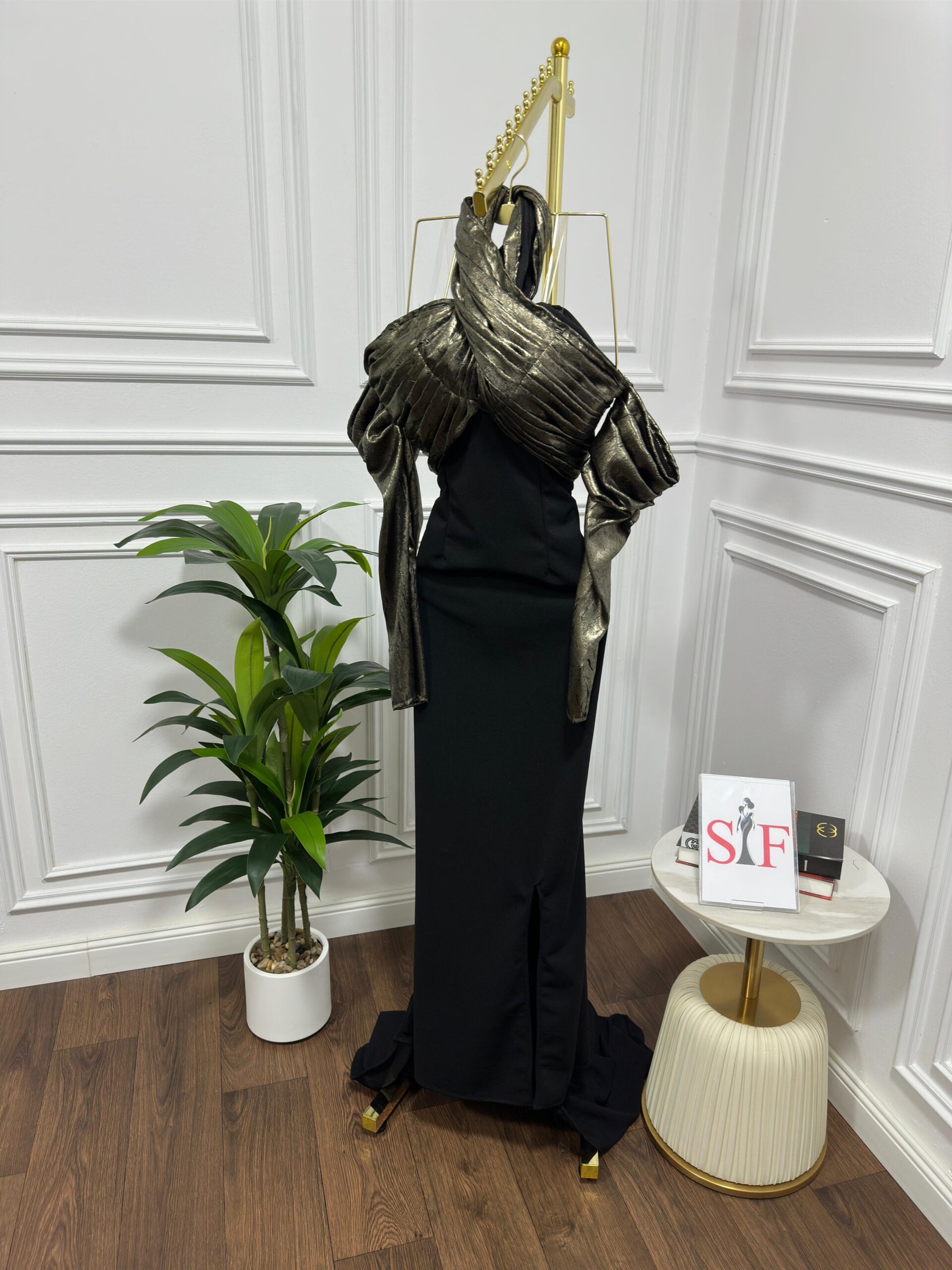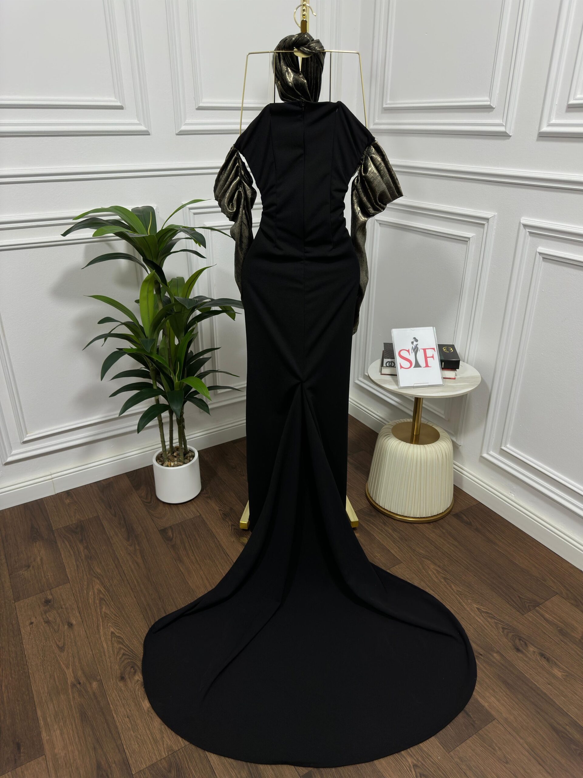 فستان سهرة لون اسود كريب استرتش