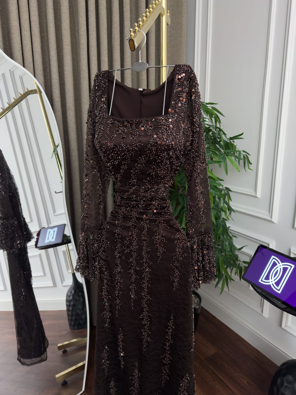 فستان سهرة دانتيل تطريز خرز