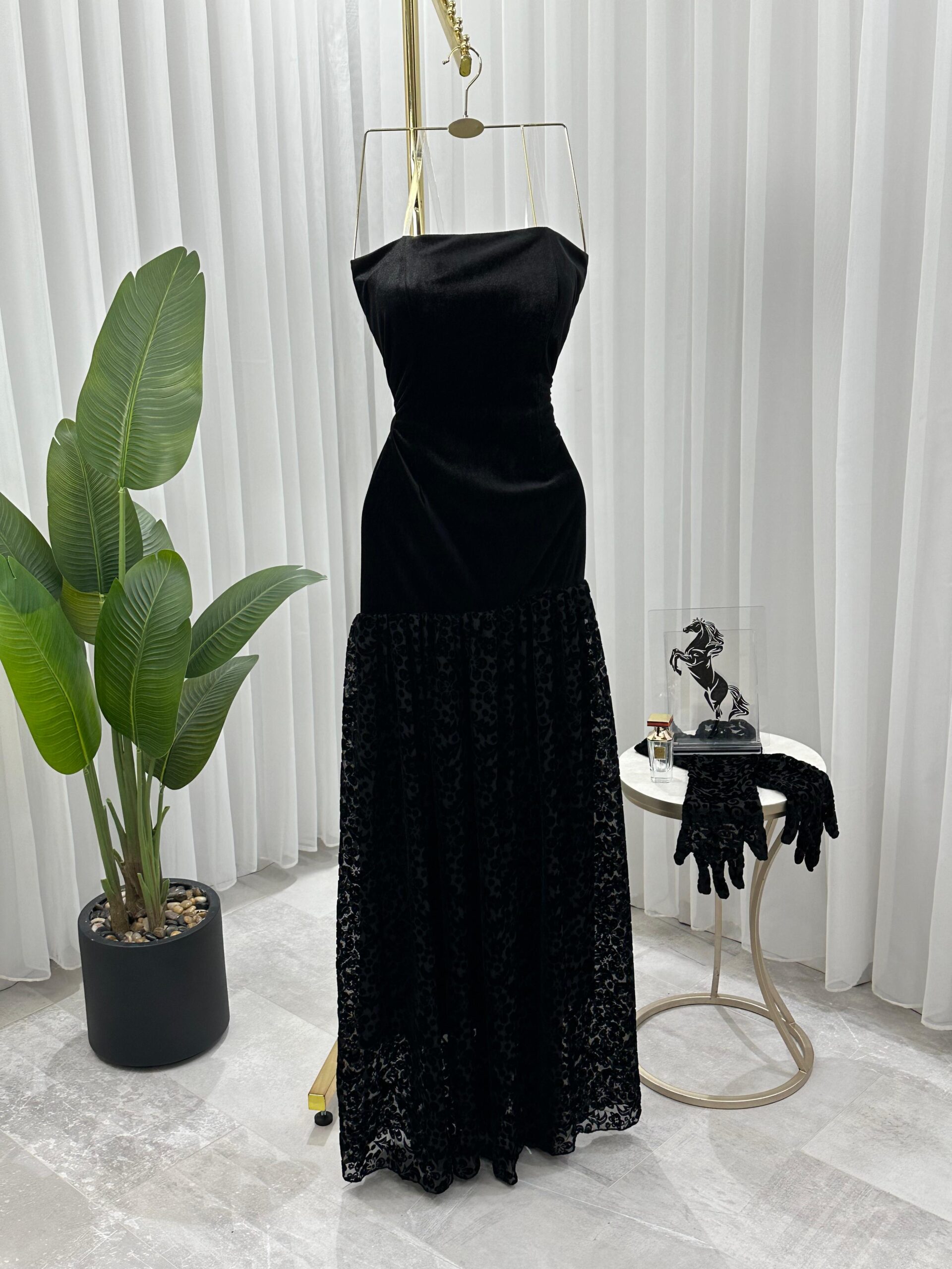 فستان سهرة مخمل أسود